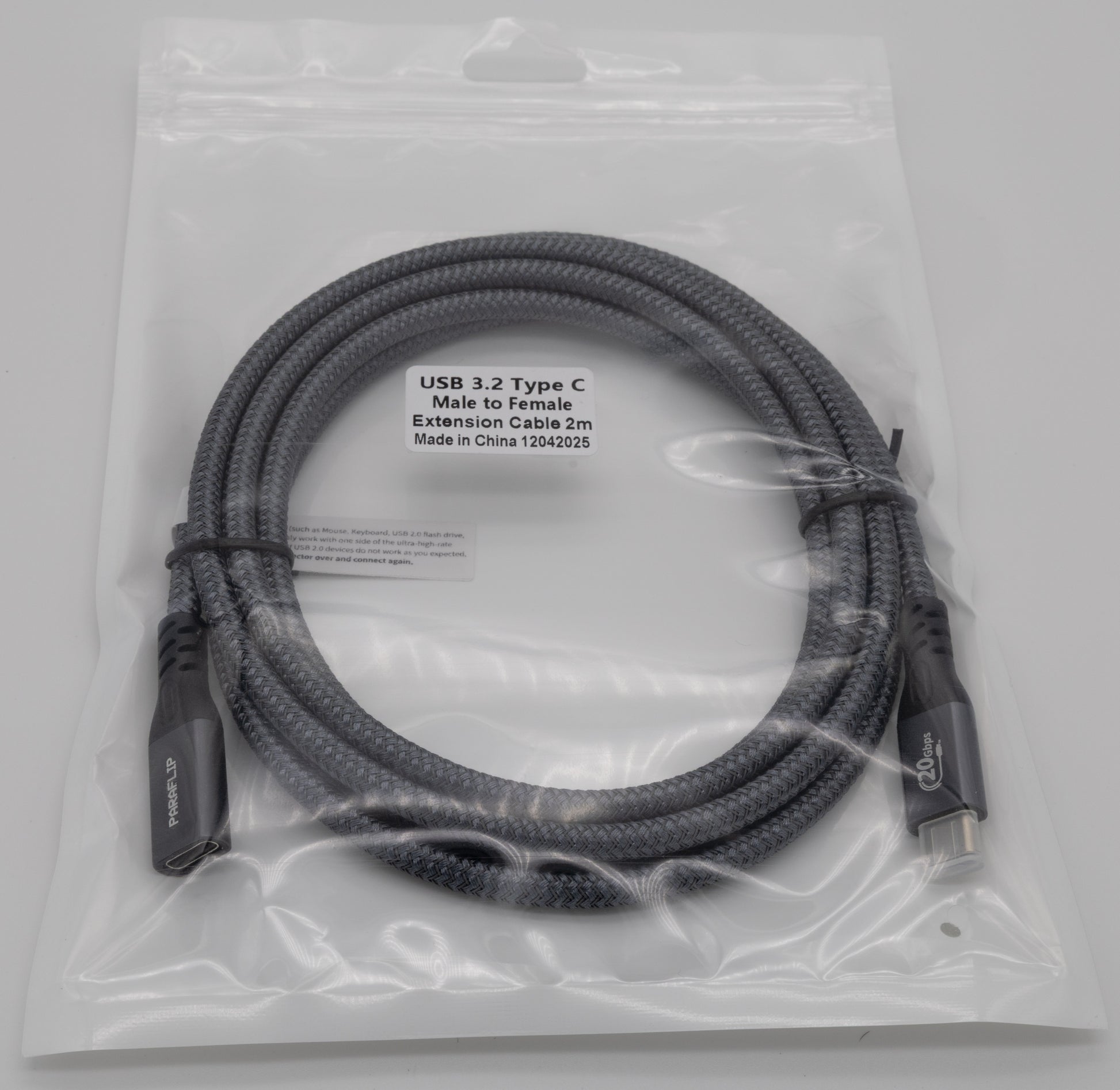 PARAFLIP USB-C Extension Cable (USB 3.2, 20 Gbps, 100W)